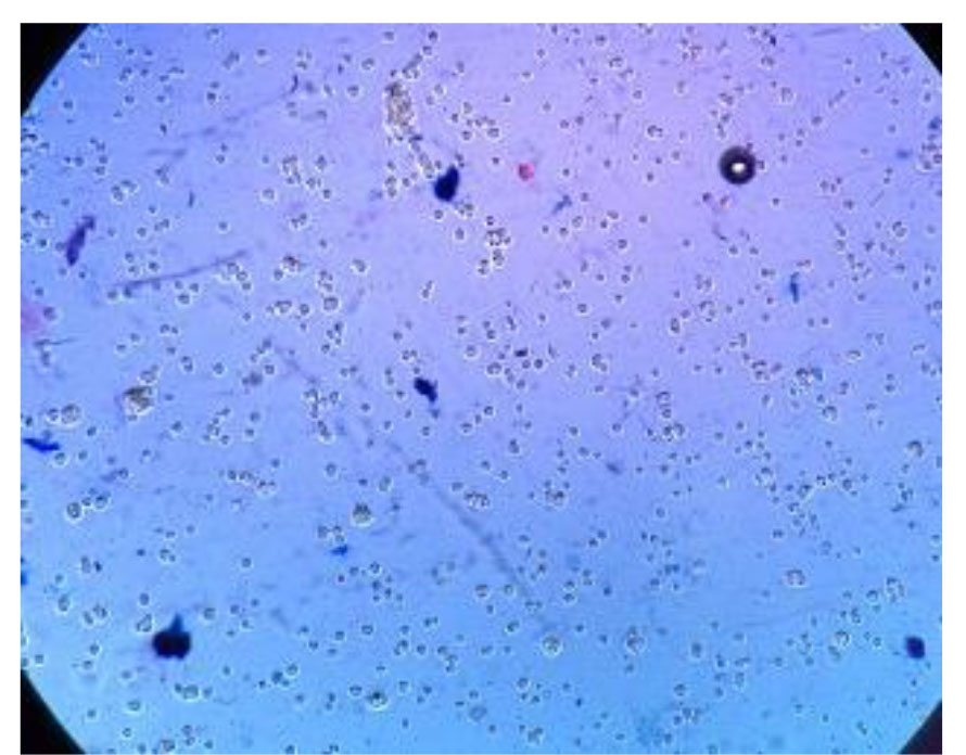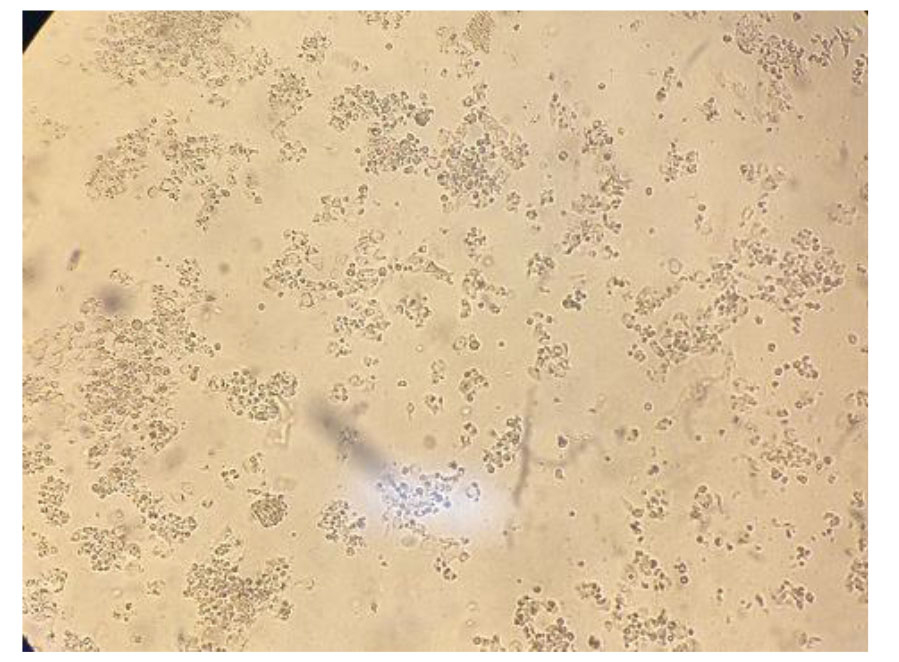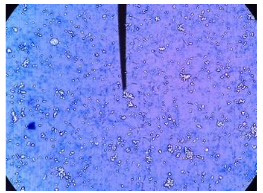 Figure 4. Calculation of the percentage of live and dead cells by trypan blue (×100)