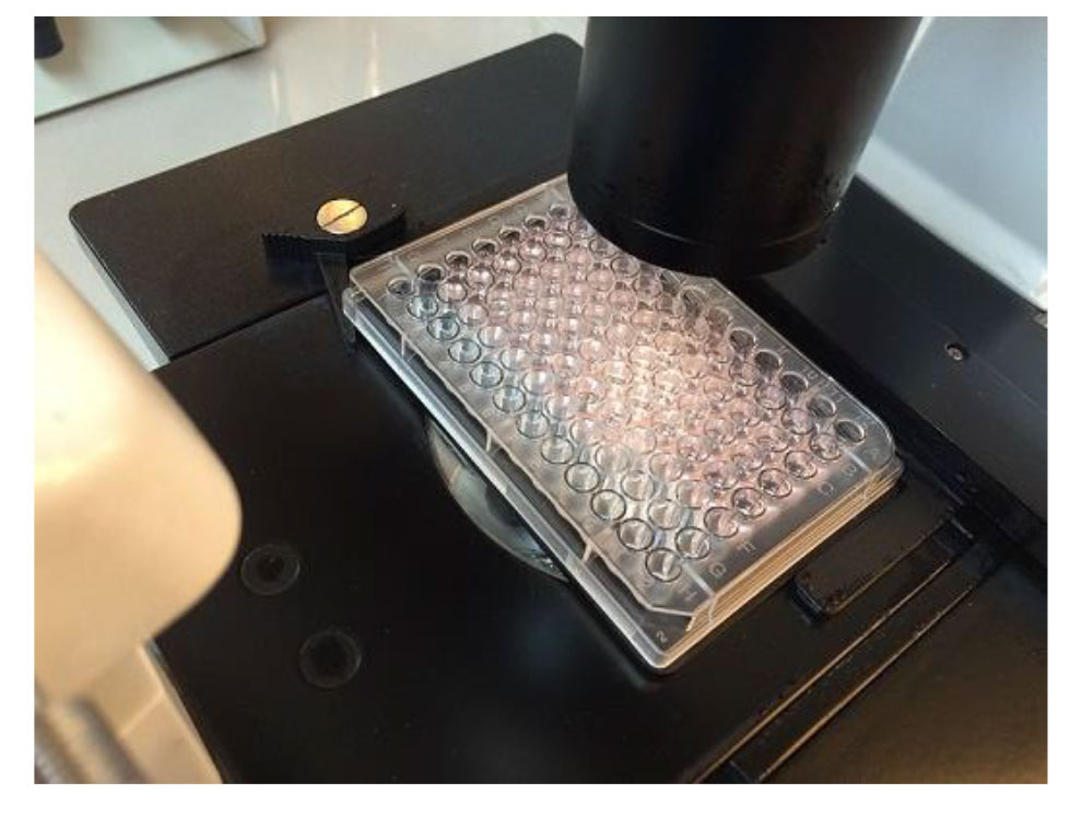 Figure 5. Observing the establishment of cultured cells in the plate using an inverted microscope